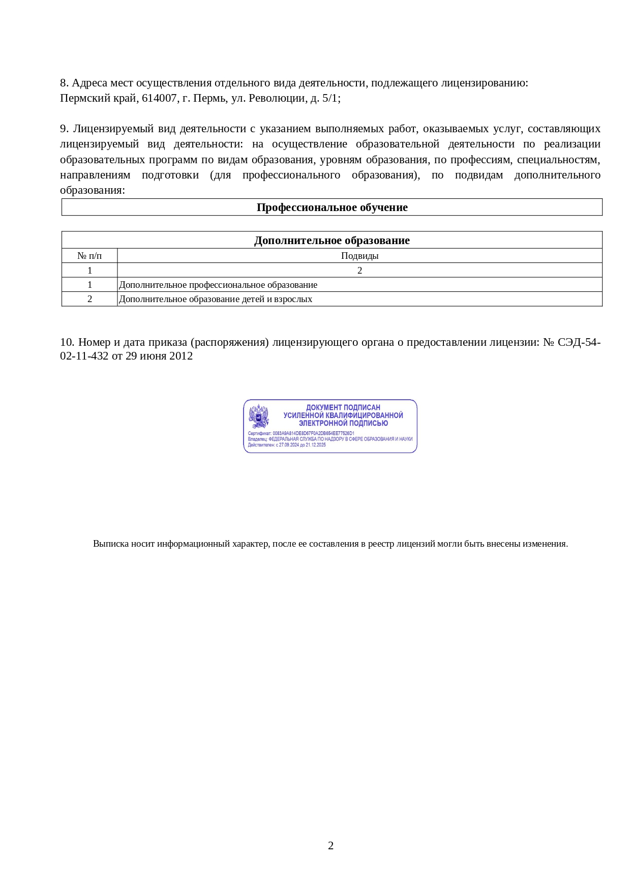 Лицензия на осуществление образовательной деятельности № Л035-01212-59/00386077