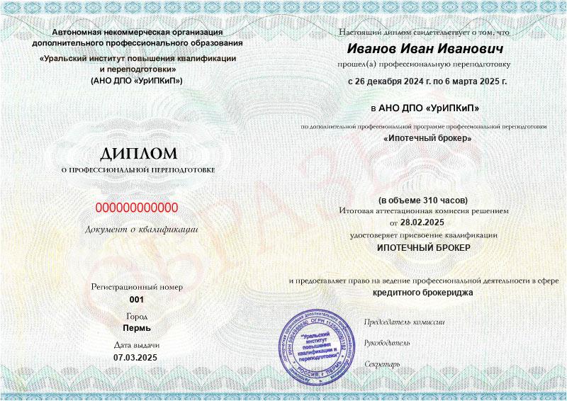 Обзор программы профессиональной переподготовки «Ипотечный брокер» с присвоением квалификации «Ипотечный брокер»