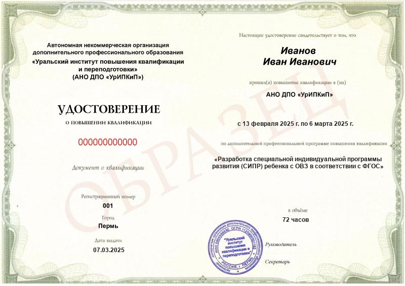 • Повышали квалификацию в АНО ДПО «УрИПКиП» – вам будет выдано удостоверение.